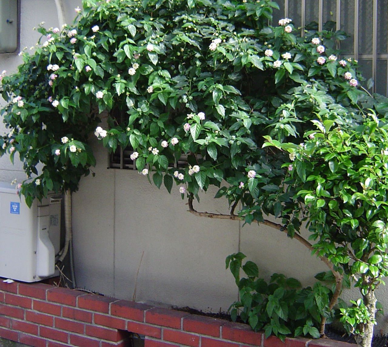 前に「ランタナ」は木であるが面白そうなので取り上げたと書いたが(2015.6.30記事)、近所で見かける「ランタナ」はいずれも背が低くて、大きくても1m程度のものしか見かけなかった。てっきり、そのぐらいが限度だろうと考えていたが、違っていた。偶然、通りかかった場所に大物がいたのである。
