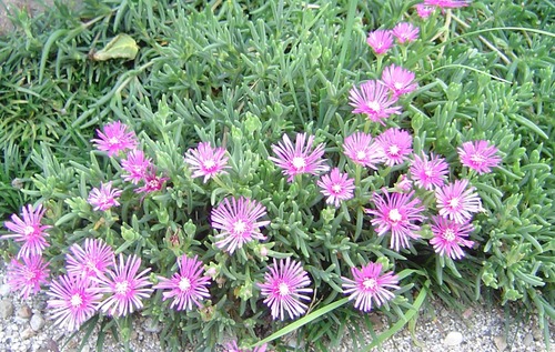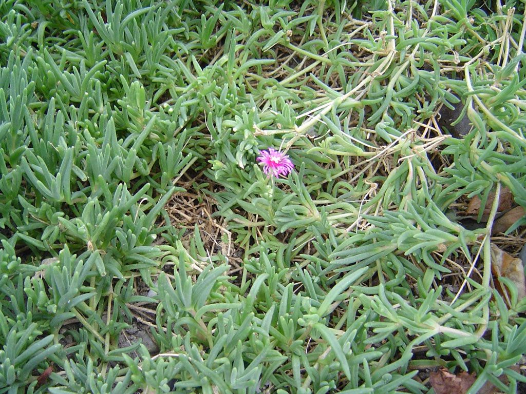 『※訂正と追加と補正情報2015.09.20/上記の写真は「マツバボタン」ではないようです。「レイコウ(麗晃)/ハマミズナ科デロスペルマ属」と思われます。南アフリカ原産の帰化植物で日本では「耐寒マツバギク」と呼ばれます。まあ「ボタン」と「キク」ではずいぶんと違う。あらためて「レイコウ(耐寒マツバギク」で調べてみましたが、情報がほとんどありません。環境省の「日本の帰化植物」にも見当たりません。おそらくまだ園芸種扱いなのではないでしょうか。』
