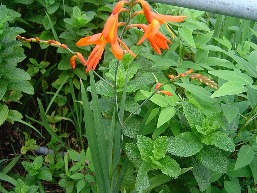 前述した「ヒオウギズイセン」と「ヒメトウショウブ( Crocosmia pottsii)」の間に生まれた子のようだ。消えたと思ったら他所で子供を作っていたのである。「ヒオウギズイセン」の面影があるが全体的に小さい。また、花がすぼまっているので、こちらの方が水仙に似ているといえる。初代の「ヒオウギズイセン」は、これを予測して自らを「ヒオウギズイセン」と名乗ったのだろうか。目端の利くヤツだ。だが、葉も貧弱で「ヒオウギ」の面影はあまりなく、自ら「クロコスミア」「モントブレチア」と名乗っている。2代目を自負しているようだ。そして、これが問題なのだが、繁殖力が強くて他の花達に迷惑をかけており、とうとう栽培を禁止する県も出てきた。傍若無人な振る舞いが目につく奴だ。異国における振る舞いには注意してもらいたいものである。このままでは「スイセン族」にも迷惑が及んでしまうのではないか。